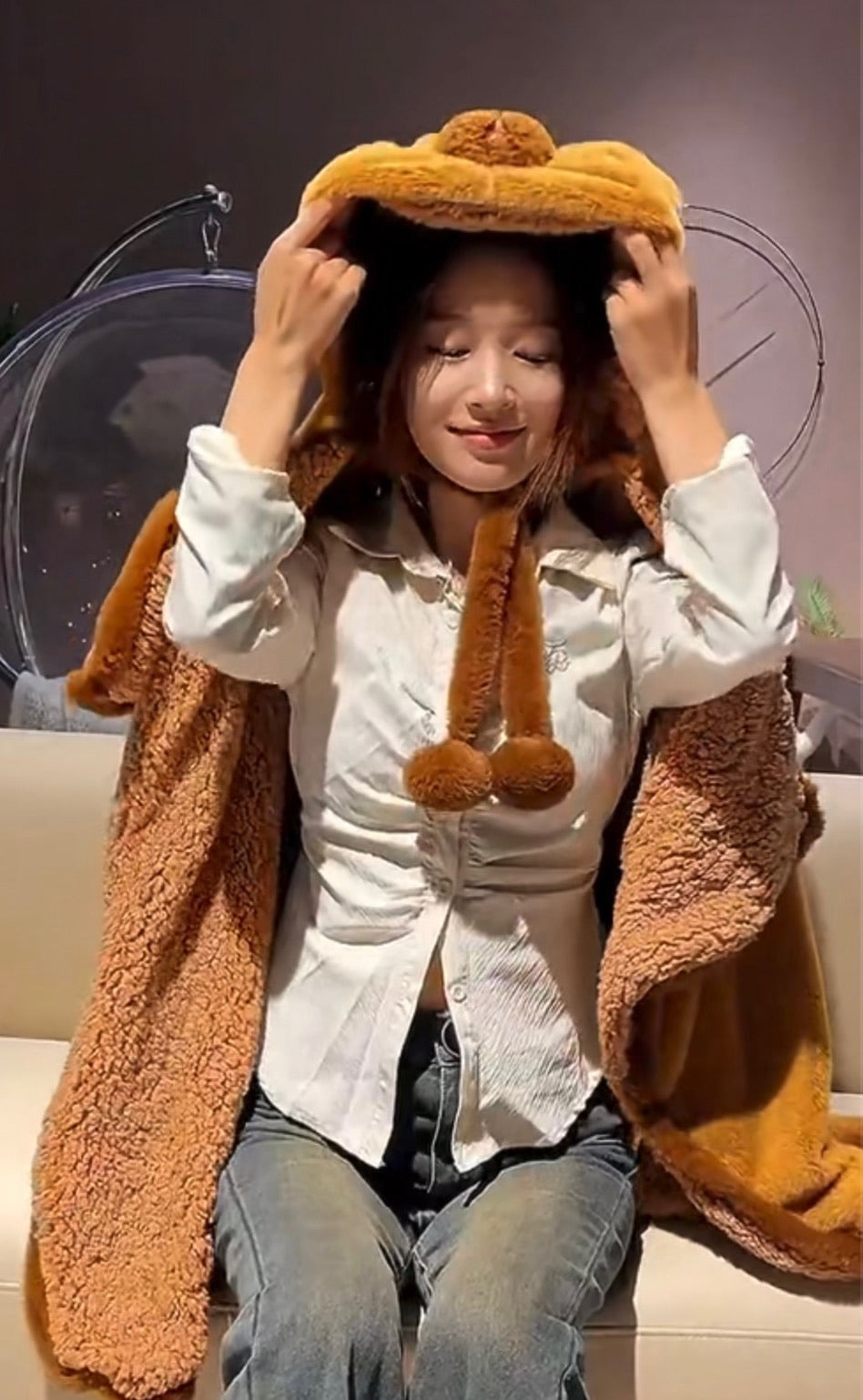 カピバラ冬用クロークケープ 裏起毛で厚手の“なまけブランケット”